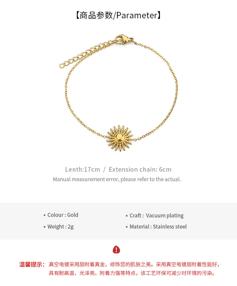 2021 New Fashion Bijoux 18K Gold Plated Exaggerated Sun Pendant With Stainless Steel Jewelry Women Bracelets