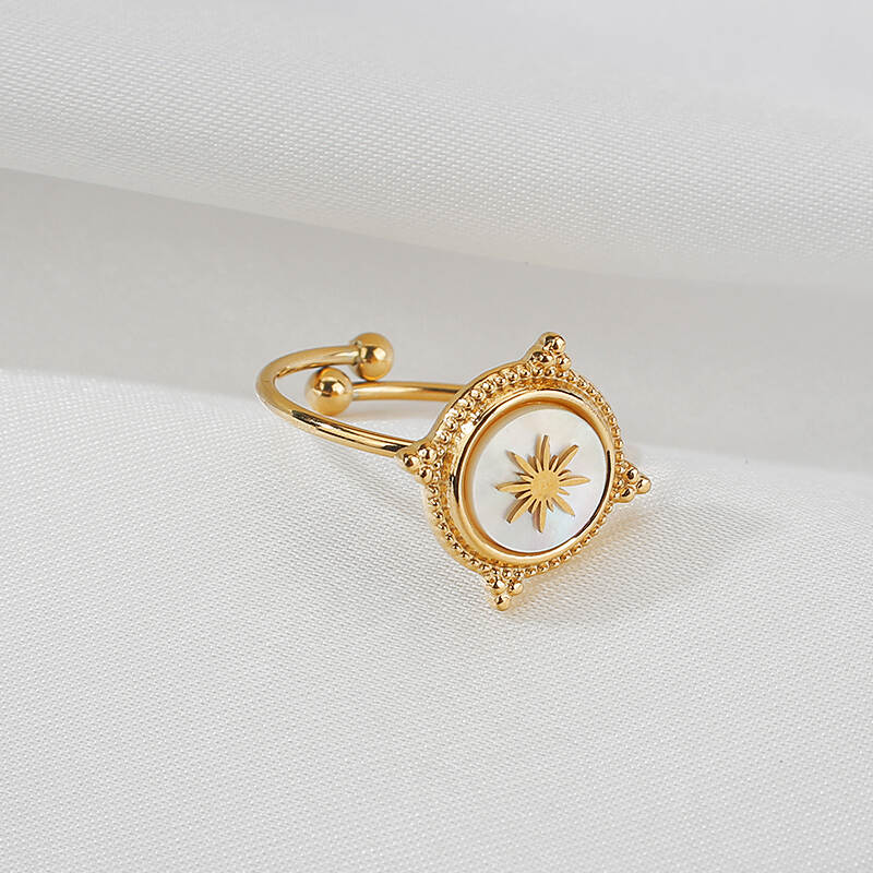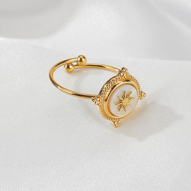 2021 New Fashion Bijoux Gold Exaggerated Simple Ring Polaris With Natural Stone Stainless Steel Jewelry Women Rings