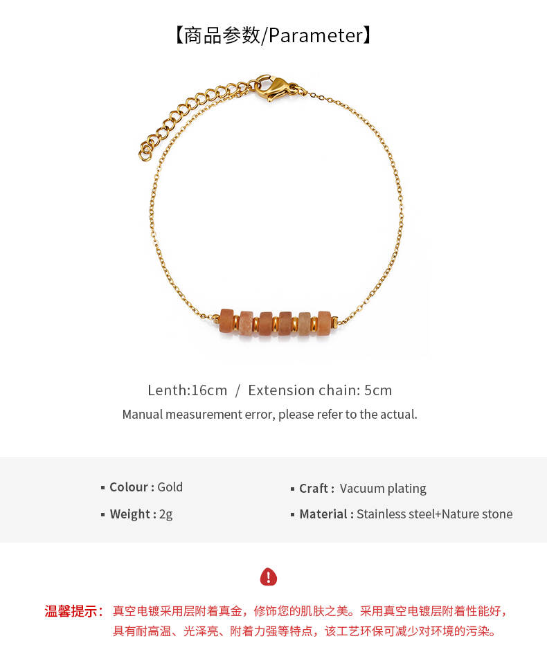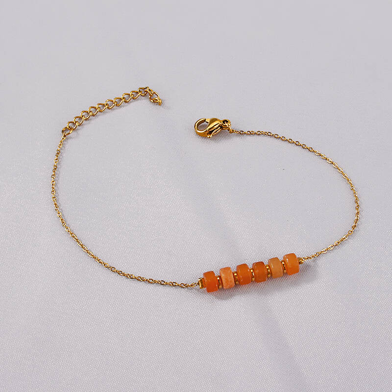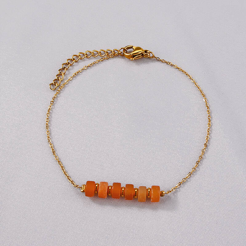 Fashion Bijoux 18K Gold Plated Exaggerated Red Beads With Natural Stone Stainless Steel Jewelry Women Bracelets
