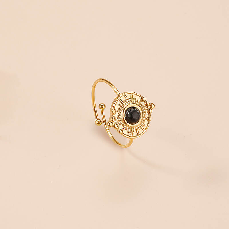 Fashion Bijoux Exaggerated Simple Ring Demon Natural Stone Stainless Steel Jewelry Women Rings