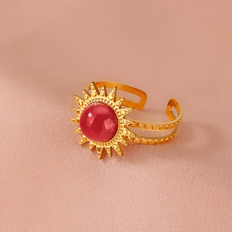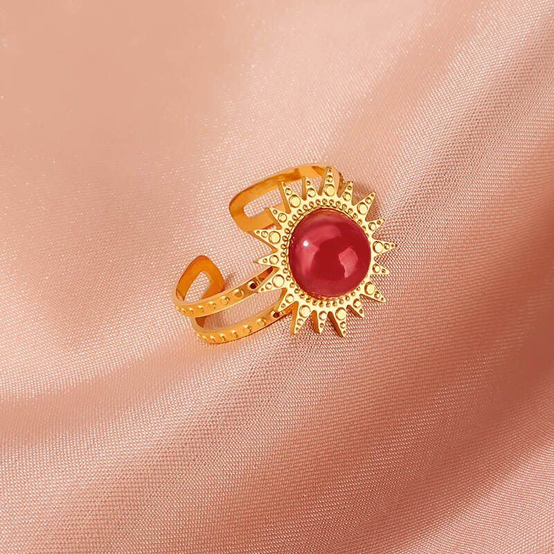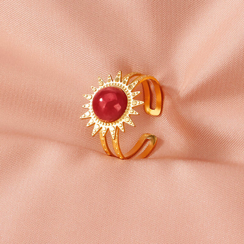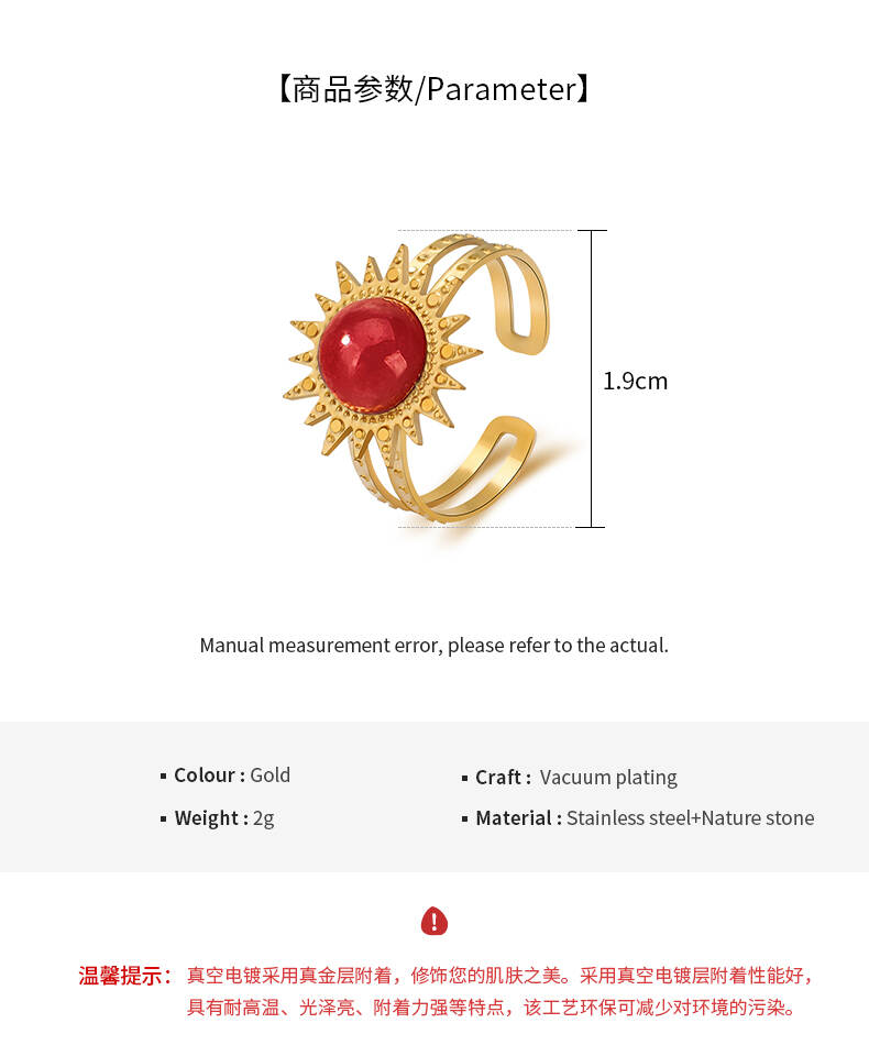 Fashion Bijoux Exaggerated Simple Ring Round Sun Flower With Natural Stone Stainless Steel Jewelry Women Rings
