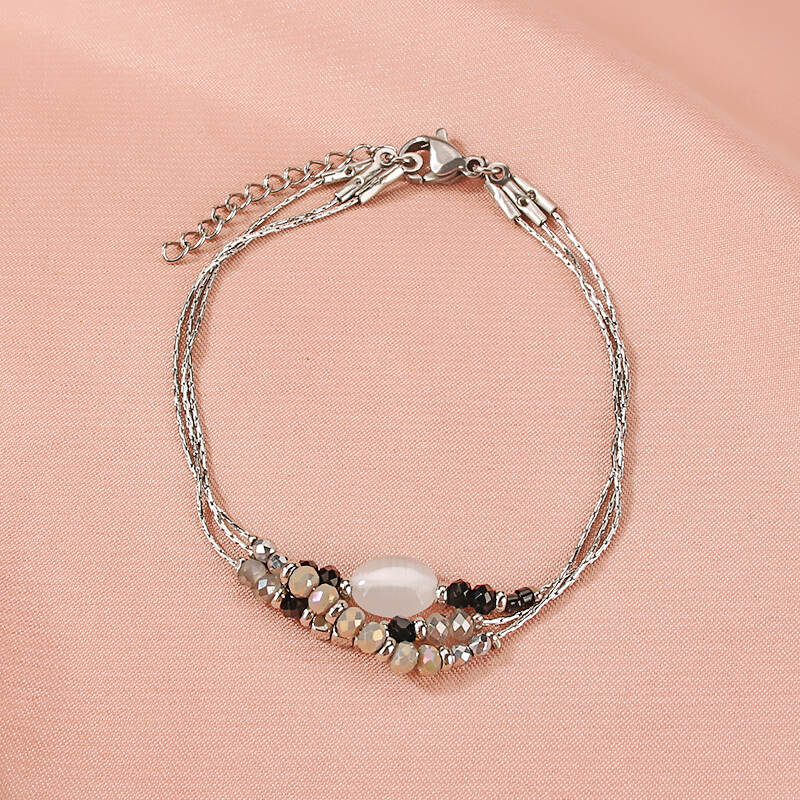 Fashion Bijoux Gold Exaggerated Beads Oval Pendant With Natural Stone Stainless Steel Jewelry Women Bracelets