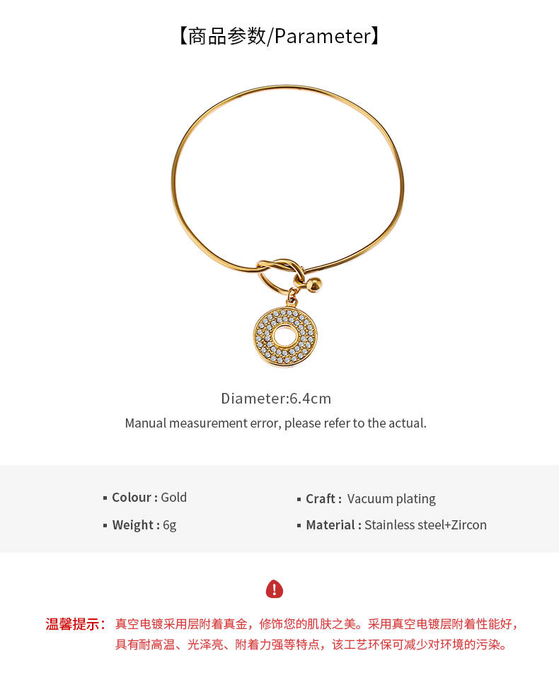 Fashion Bijoux Gold Exaggerated Simple Bangles Hollow Wafer With Zircon Stainless Steel Jewelry Women Bangles