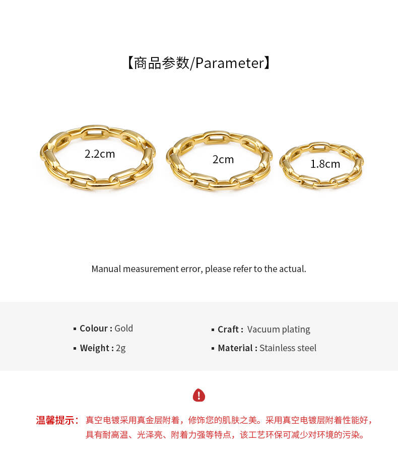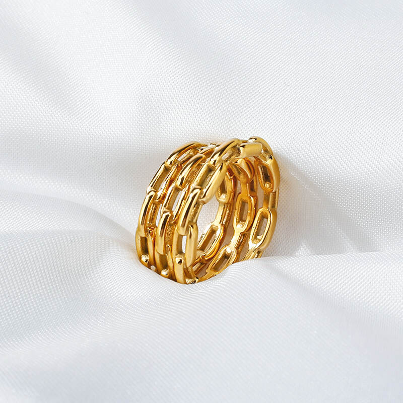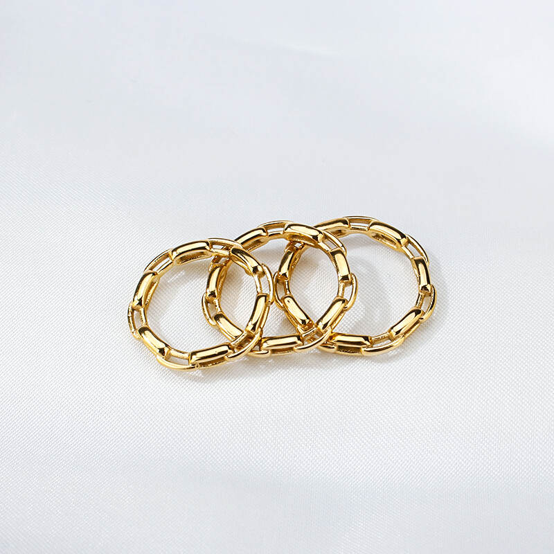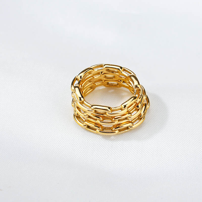 Fashion Bijoux Gold Exaggerated Simple Ring Square Chain Stainless Steel Jewelry Women Rings