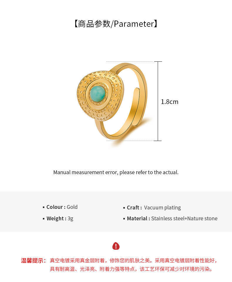 Fashion Bijoux Gold Exaggerated Simple Ring Natural Stone Stainless Steel Jewelry Women Rings