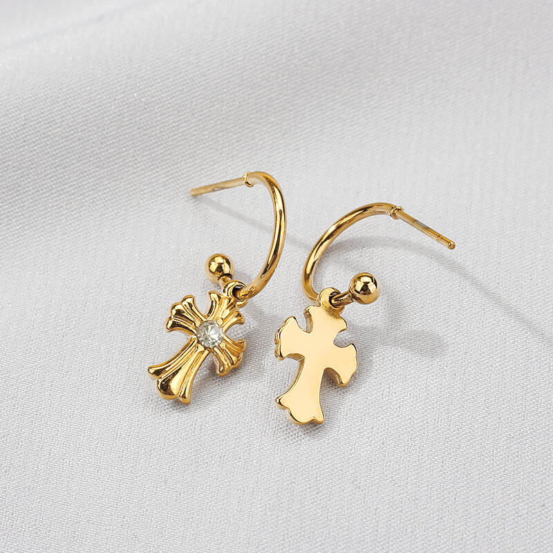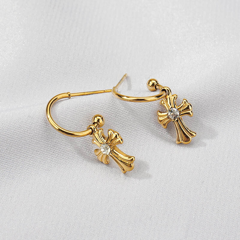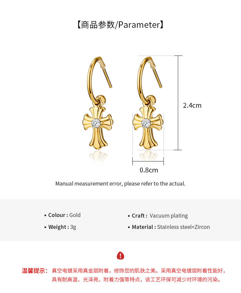 Fashion Jewelry Cross With Zircon Stainless Steel Hanging Earrings