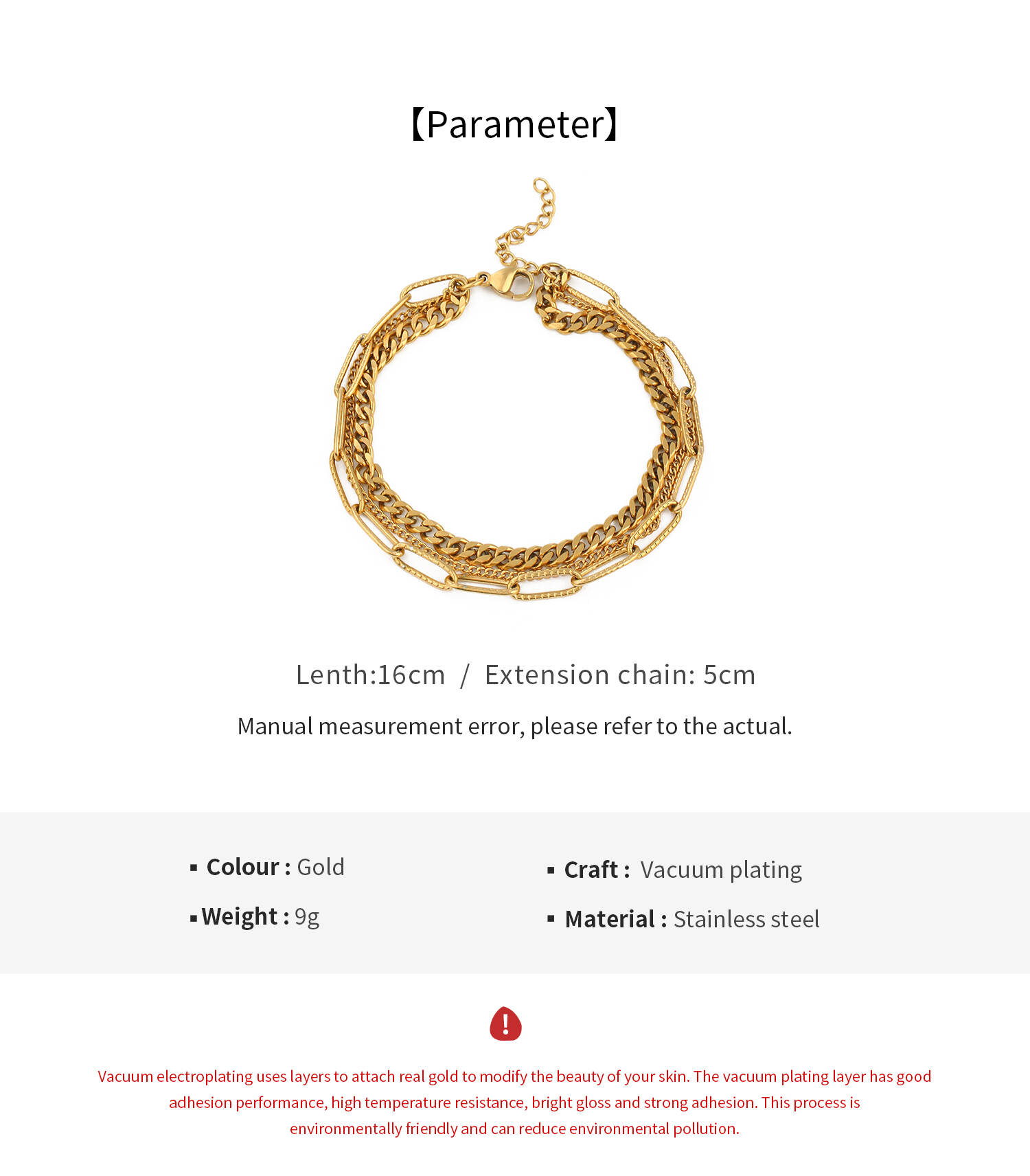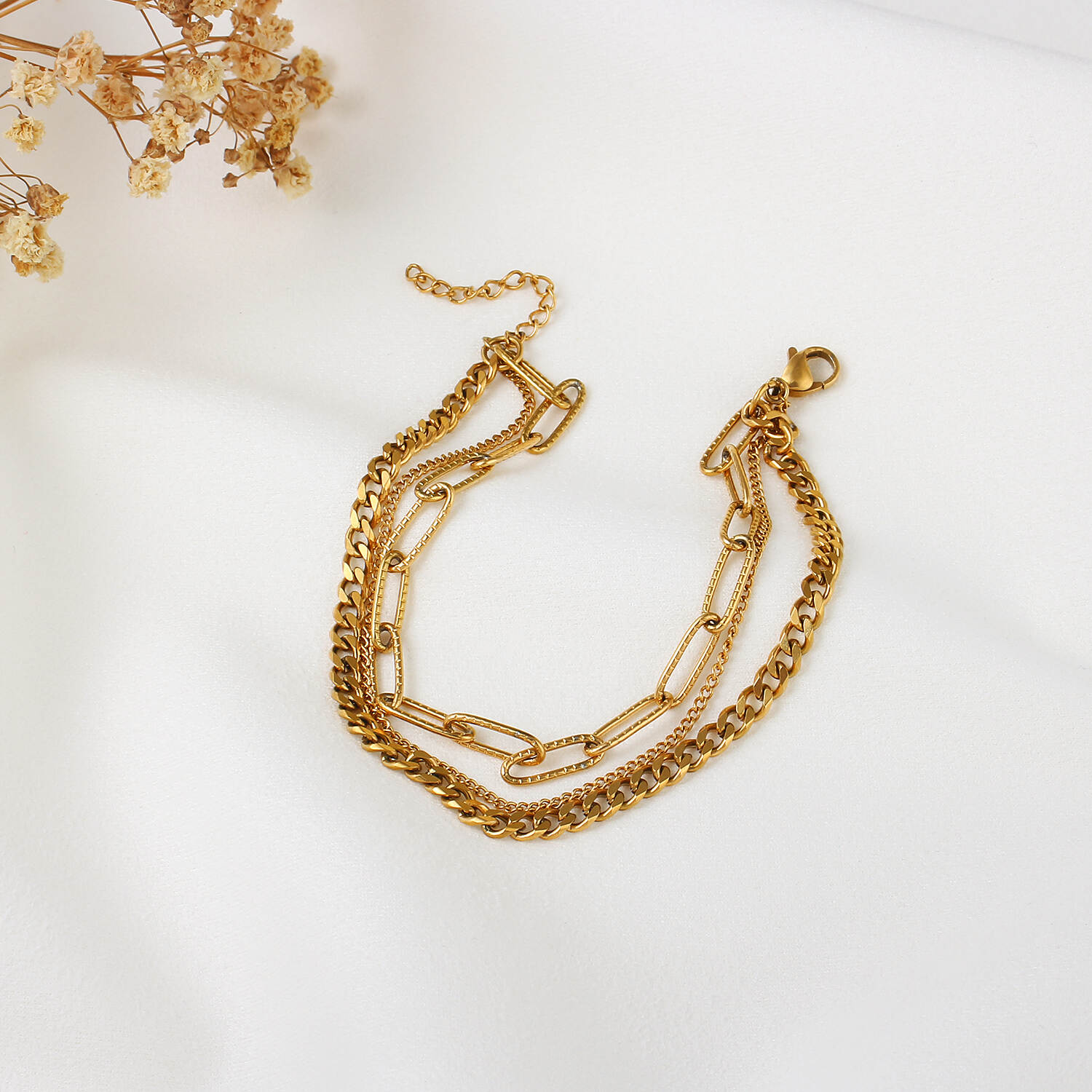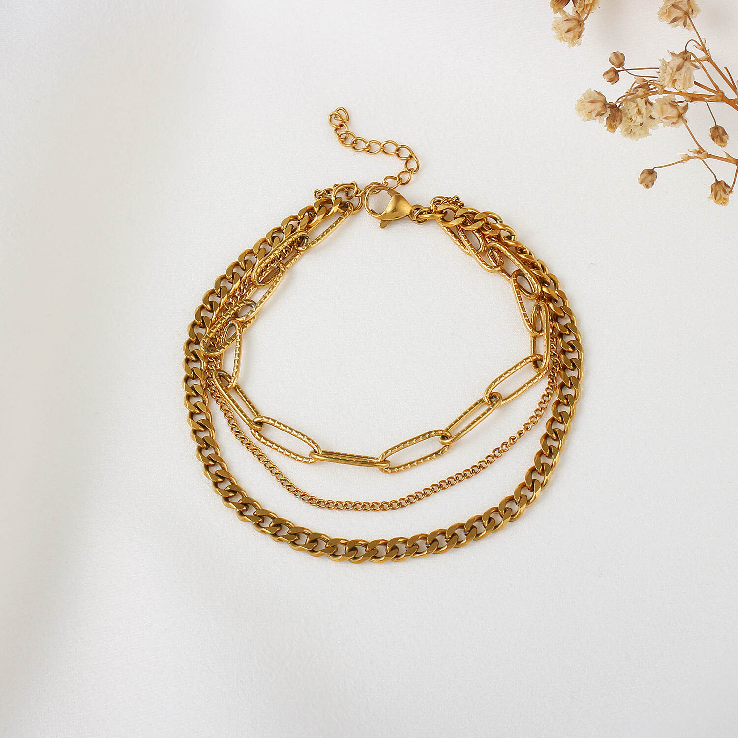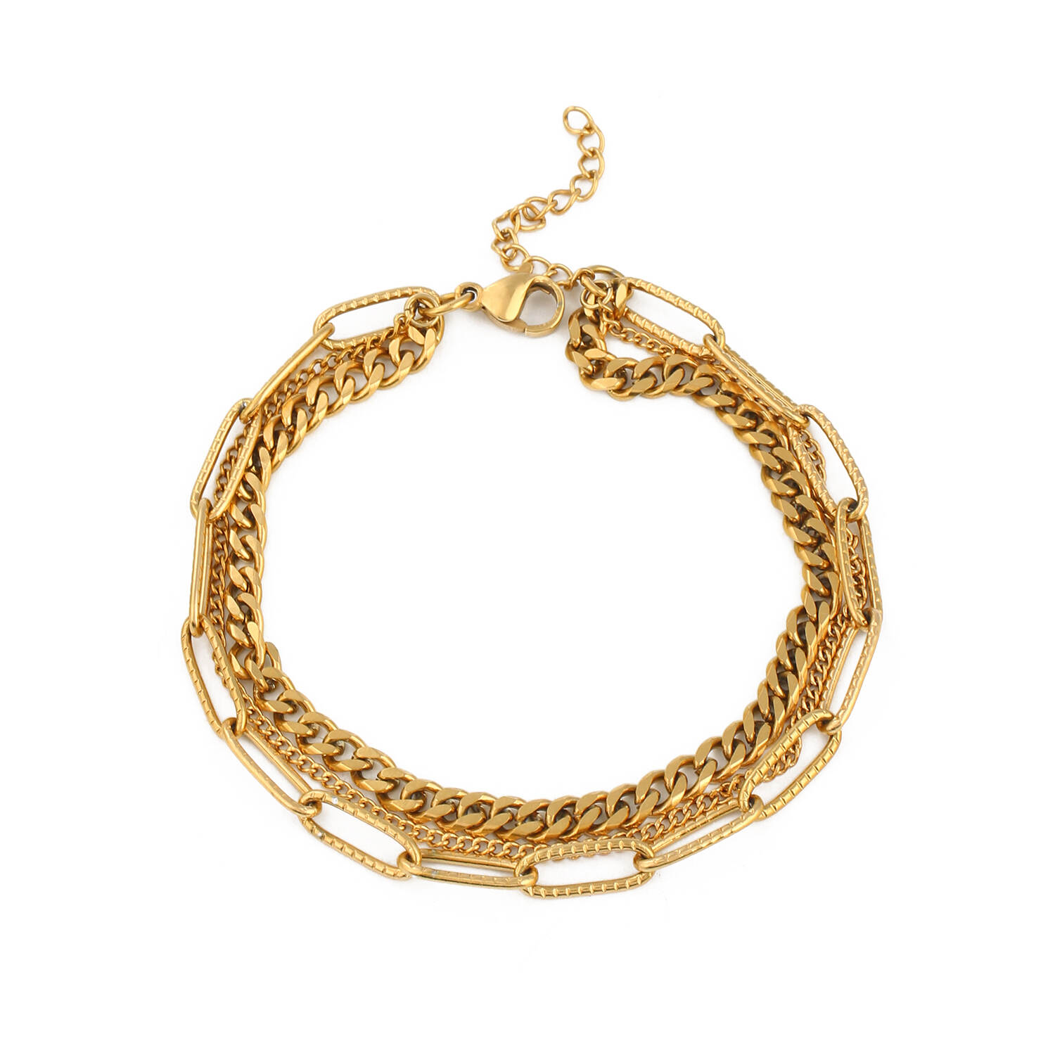 New 18K Gold Three Chains With Stainless Steel Jewelry For Women's Bracelets