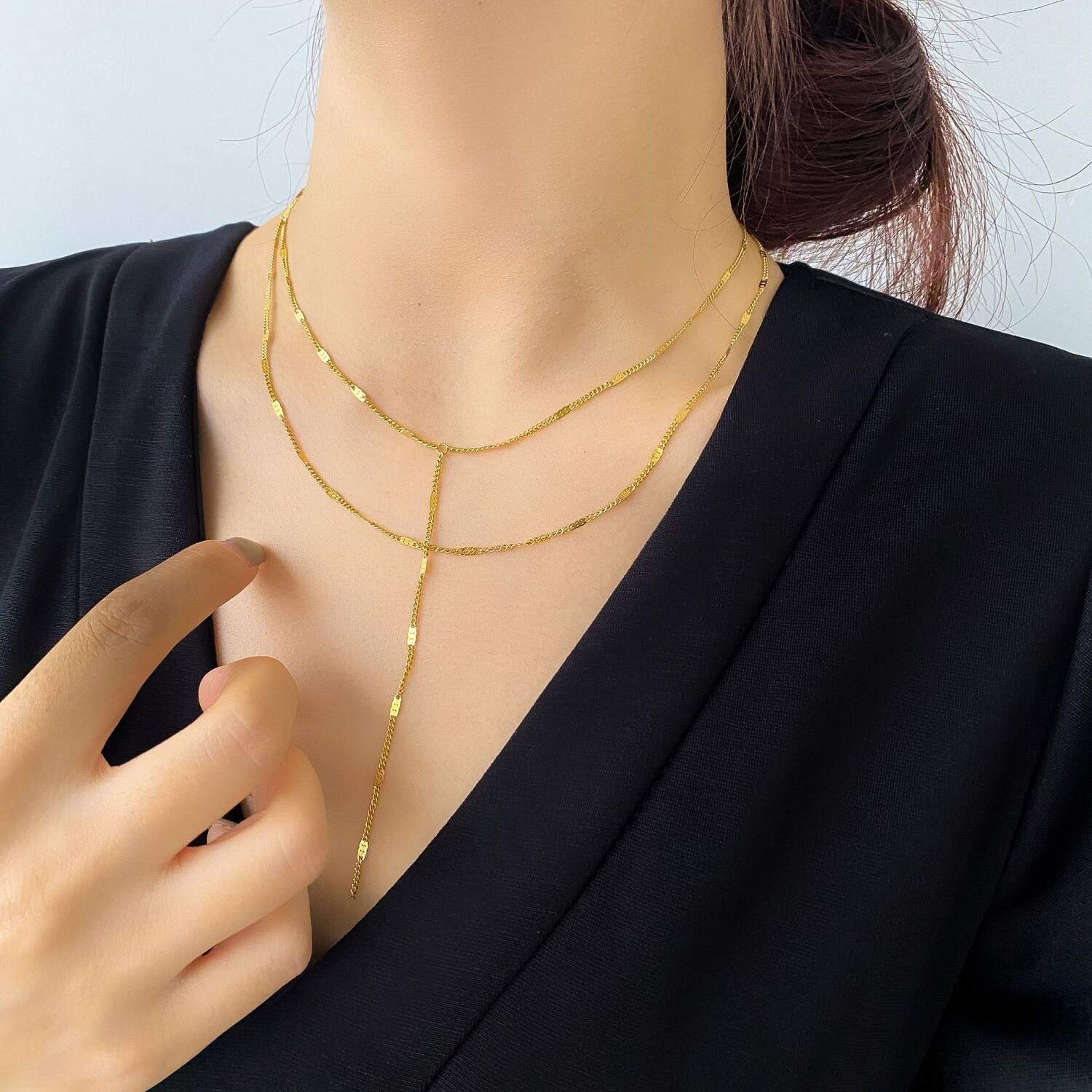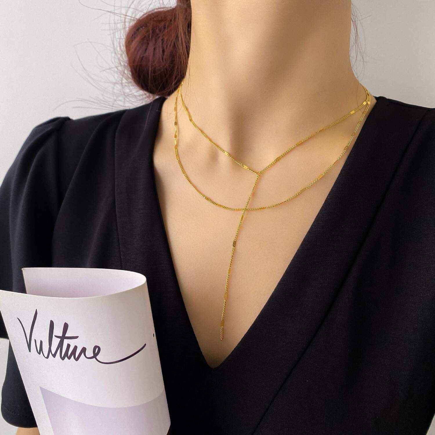 Temperament Golden Two-piece Foldable Clavicle Y-shaped Chain Jewelry For Women's Necklace